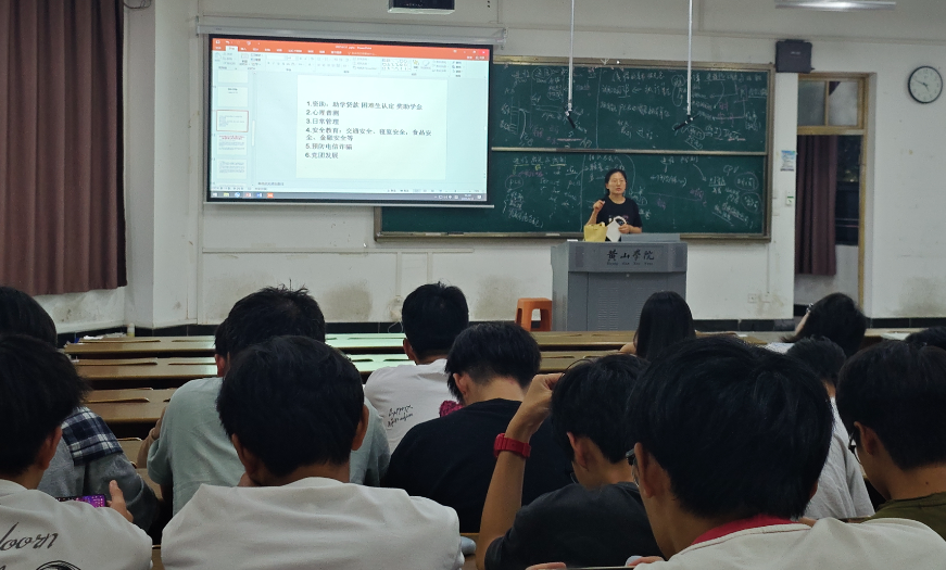 在辅导员胡小侠的主持下班会内容还涉及了心理普测、日常管理、安全教育、预防电信诈骗、党团发展以及学业警示等多个方面。胡小侠辅导员强调了安全主题教育的重要性,提醒同学们提高日常人身和财产安全防范意识,慎重选择户外活动方式,严禁擅自组织集体出游或从事其他未经批准的活动,严格遵守交通规则。她还提到了生命文化教育,鼓励同学们感恩父母,珍爱生命,树立人生目标,做好职业规划,养成良好的学习和生活习惯。