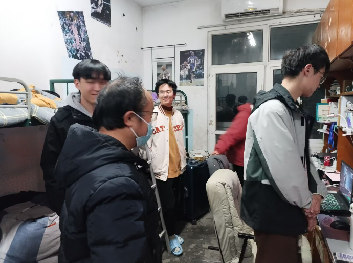 走访中,师生面对面交流,重点排查寝室用电、消防等安全隐患,叮嘱同学们严守宿舍管理规定,做好防寒保暖与健康防护;细致询问学业进展、备考状态等,倾听同学们生活诉求并逐一回应。同时就宿舍团结、人际交往、防电诈、期末备考、心理调适等进行殷切叮嘱。鼓励同学们要深耕专业,加强锻炼,全面发展,做好自我发展规划。