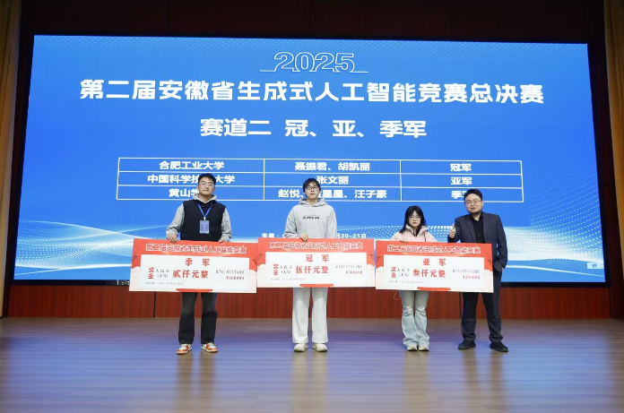 12月21日,第二届安徽省生成式人工智能竞赛总决赛在安徽工业经济职业技术乐鱼(中国)举行。我校人工智能专业学生在法律智能体问答和基于大模型的掼蛋竞赛两个赛道中,共获得本科组一等奖2项、二等奖2项、三等奖3项、优秀奖2项,并分别取得两个赛道季军(研究生与本科组合并排名第三)的佳绩。其中,两个本科生组一等奖,分别在每个赛道的研究生组、本科生组和高职高专组的合并评比中,获得季军。沈来信老师荣获优秀指导教师称号。